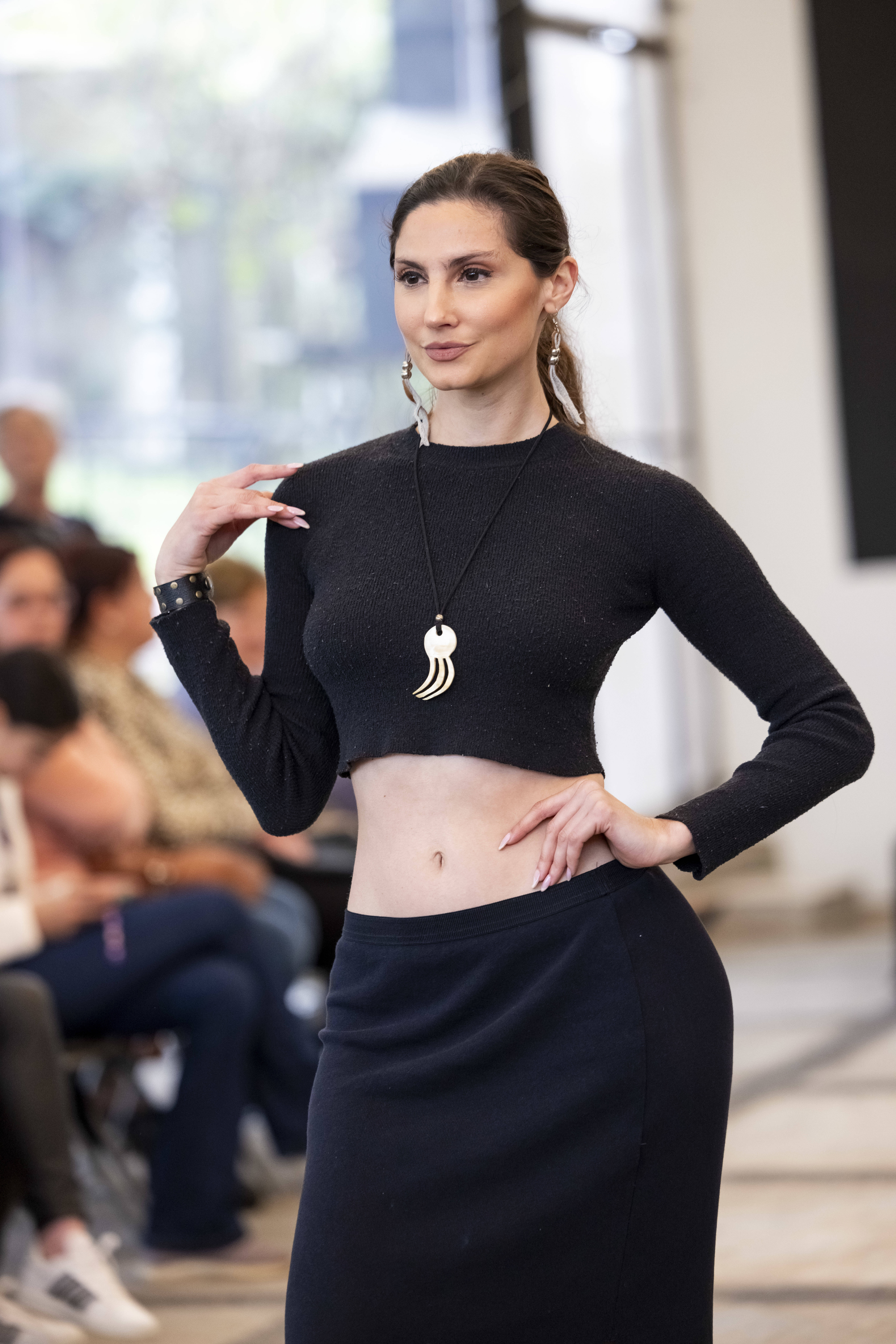 Sin duda se vió dinamismo y mucha actitud en la presentación de colección de Artelar, de la diseñadora Mónica Pereira, una marca local de tejidos a mano y de moda lenta.