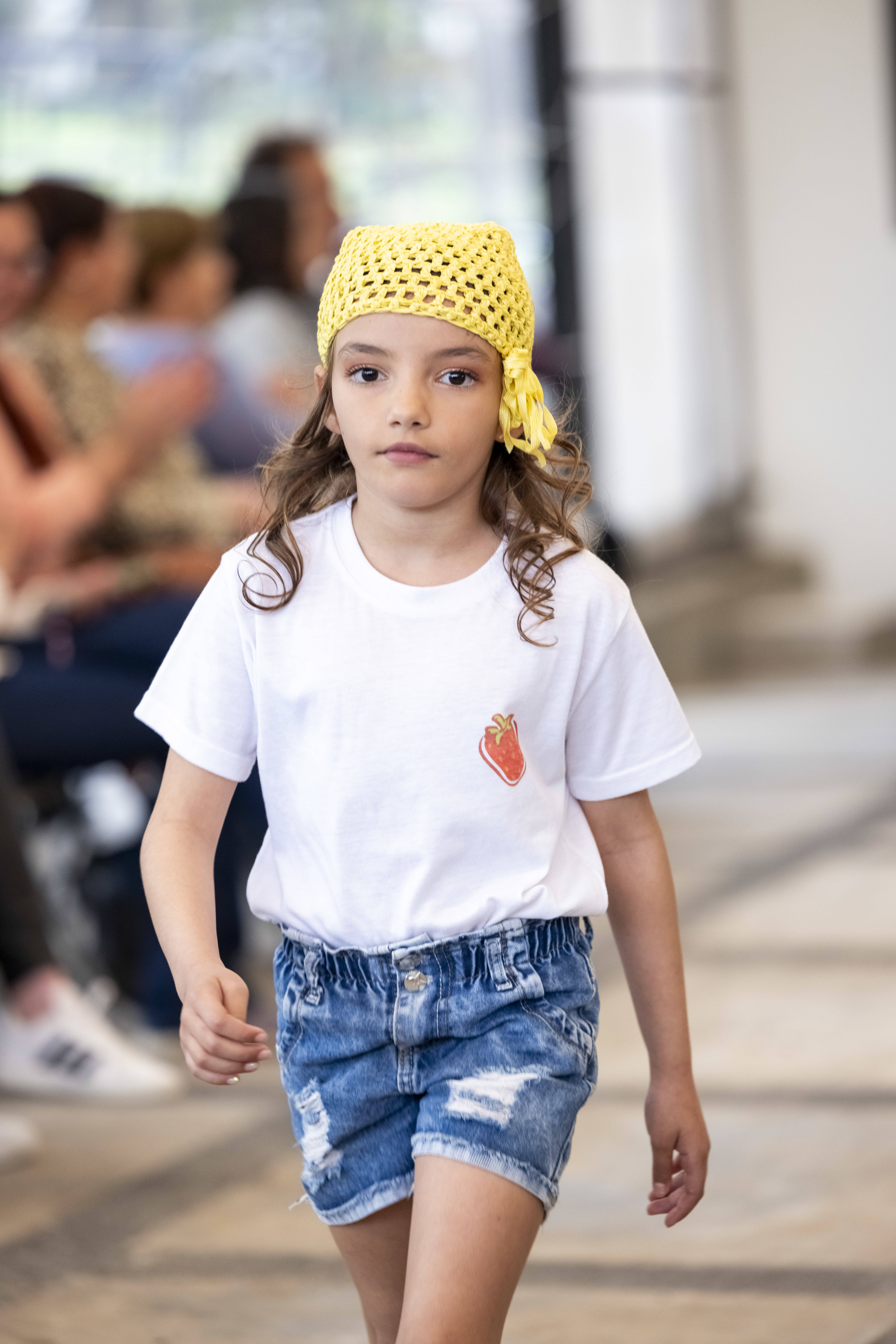 Estos gorros los podemos ver en diferentes colores, algunos con perlas, flecos, caracolitos playeros, cuentas o flores. Es un accesorio retro que eleva cualquier look y estilo, y en este desfile minimalista fue clave con la pasada de las minimodels para agregar un toque personal a prendas básicas.