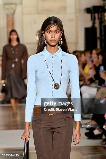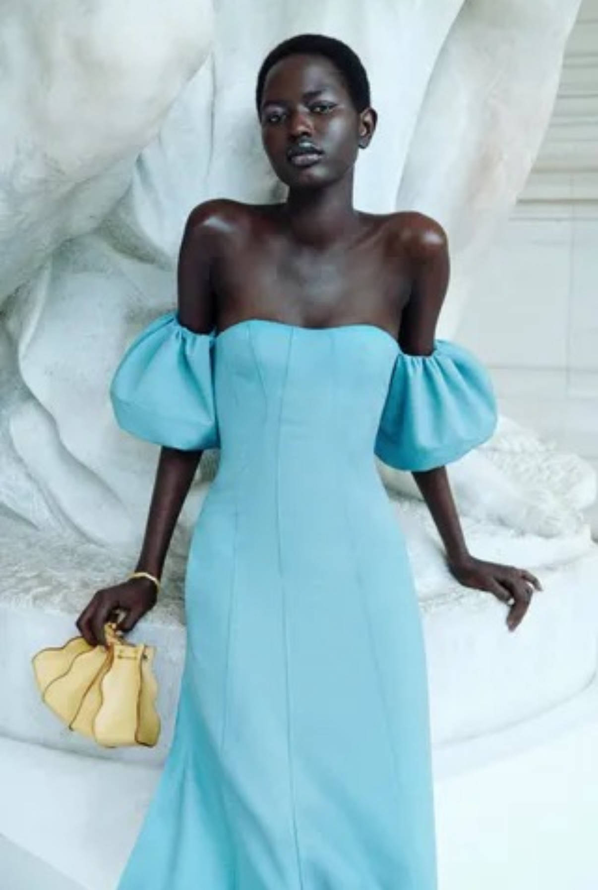 Ulla Johnson también lo lució en pasarela junto a tonos arena, blanco, naranja y verde claro. Pero ya nos había dado un adelanto del Milky Blue en su colección Resort 2026, junto a líneas simples, limpias, volados y movimiento.